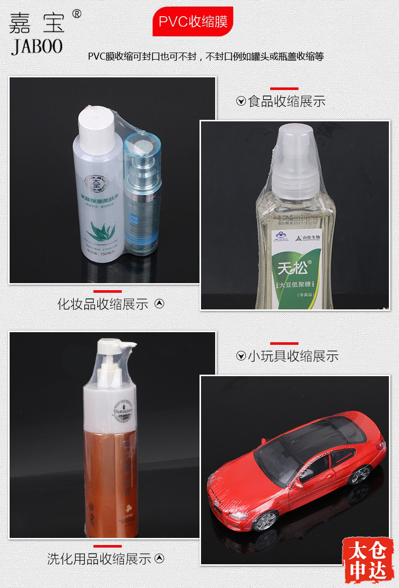 薄膜,热收缩膜广泛应用于:食品、药品、消毒餐具、文体用品、工艺礼品、印刷品、五金塑料制品、电话机、电子电器等各种产品的外包装,其主要作用是稳固、遮盖和保护产品